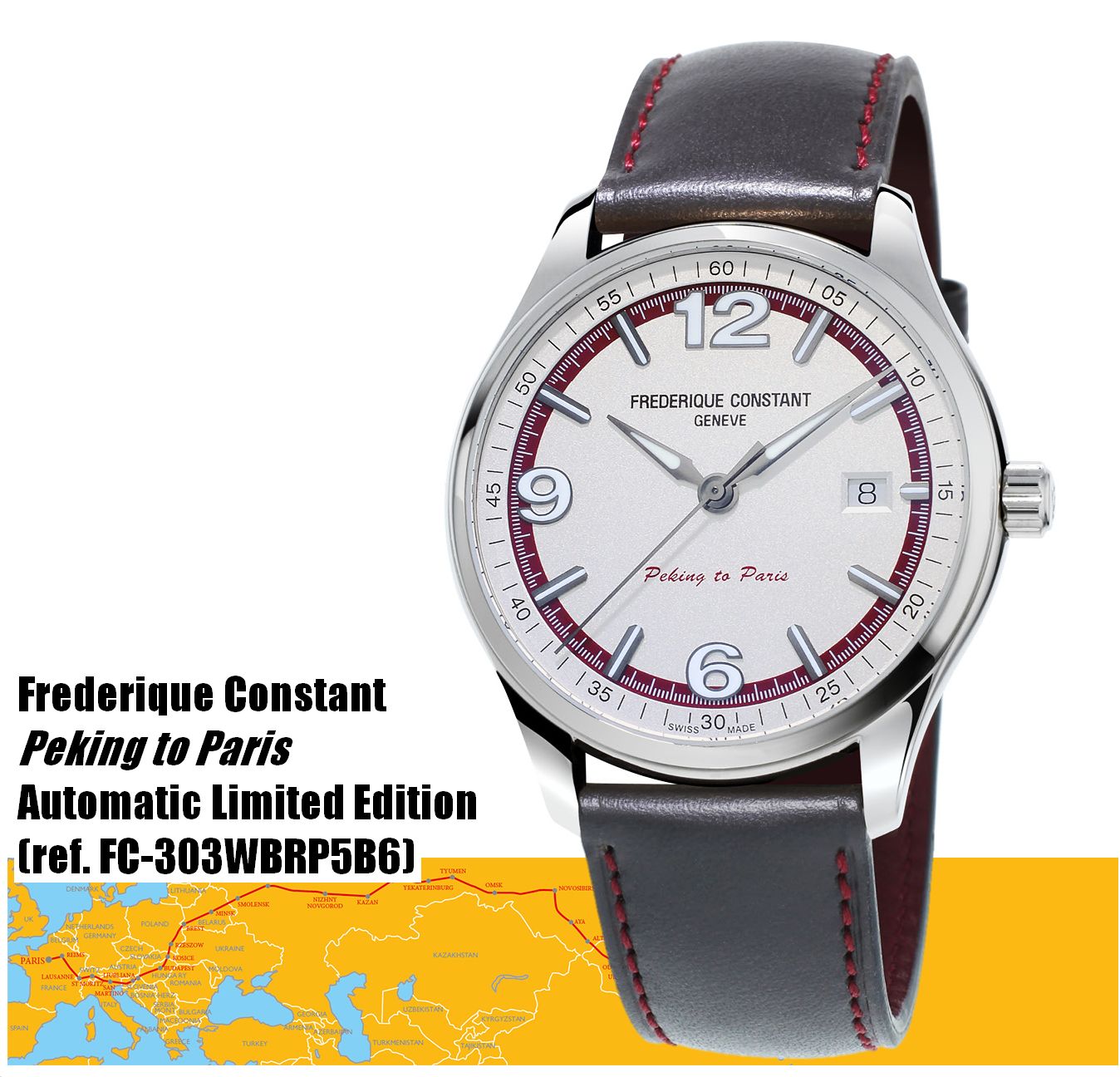 Новые автоматические наручные часы Frederique Constant Peking to Paris (ref. FC-303WBRP5B6), выпущенные в ограниченном количестве, возможно, трудно назвать чем-то принципиально новым или революционным в каком-либо смысле этих слов, однако они все же смотрятся в действительности очень интересно (хотя и цена слишком высока). Этот аксессуар замечательно подойдет тем, кто предпочитает спортивные часы с тремя стрелками. И, несмотря на то, что утверждение «ограниченный выпуск» звучит несколько хитроумно (в том смысле, что нельзя всерьез ожидать, что часы, ограниченные почти 2900 экземплярами, будут редкостью в ближайшем будущем), все остальное, касающееся этой модели, вполне верно: превосходный дизайн и прочный корпус, оснащенный надежным механизмом.