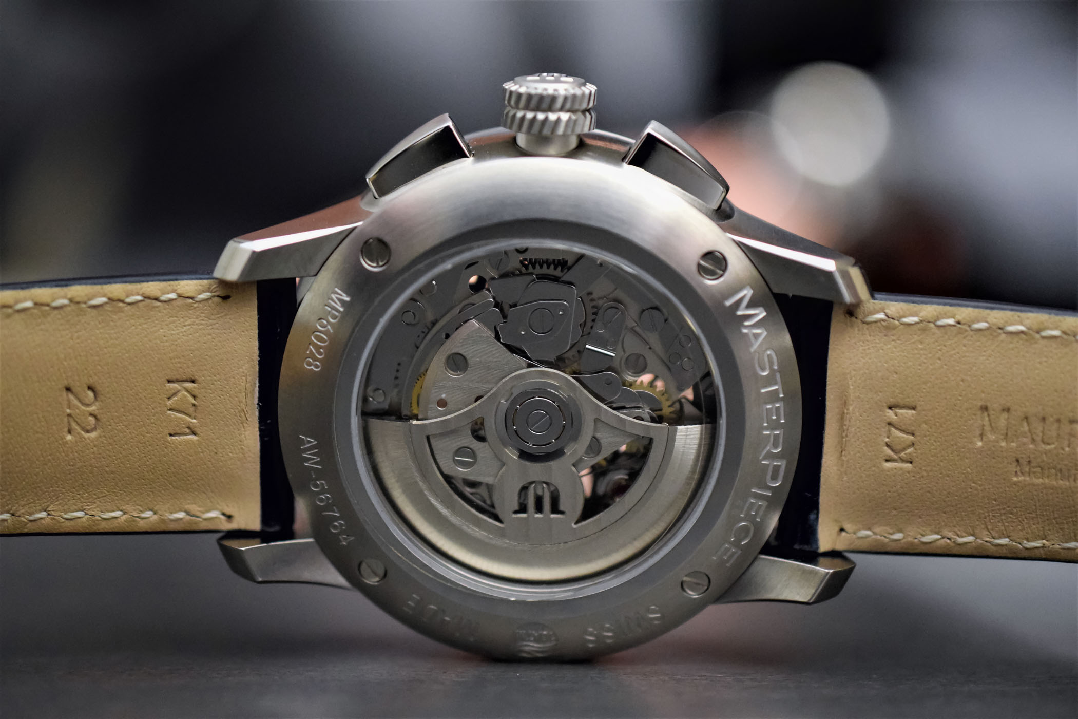 Скелетонизированный хронограф Maurice Lacroix Masterpiece оснащён автоматическим калибром хронографа на основе надёжного механизма Valjoux 7750. Механизм хронографа совершает 28 800 полуколебаний в час и имеет запас хода в 48 часов. Задняя стенка корпуса прозрачна. Через неё видна серебристая отделка с женевскими полосами на мостах, а также ротор.