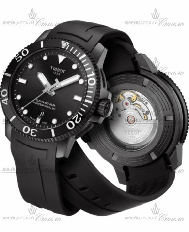 Диаметр: 43 мм. Калибр: ETA Powermatic 80. Механизм с автоподзаводом. Запас хода 80 часов. Индикация даты. Завинчивающаяся заводная головка. Прозрачная задняя крышка. Вращающийся керамический безель. Сапфировое стекло. Часовая шкала: Накладные метки. Стрелки: стальные с покрытием SuperLuminova. Черный циферблат. Браслет: Каучуковый ремешок черного цвета. Классическая пряжка. Международная гарантия 2 года.