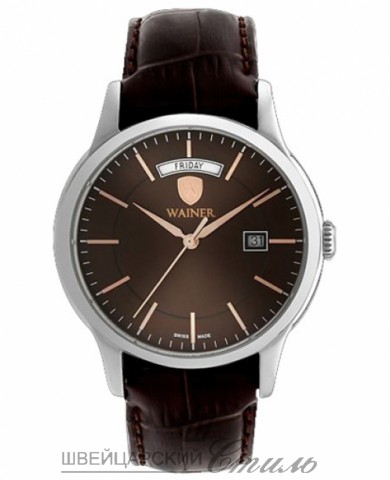 Диаметр: 44 мм. Индикация даты, дня недели. Индексы. Кожаный ремешок
