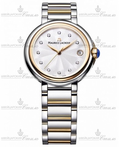Диаметр: 32 мм. Индикация даты. Гильошированный циферблат декорирован 11 бриллиантами 0,05 ct. Браслет:нержавеющая сталь c PVD покрытием с раскладывающейся застежкой