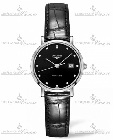 Диаметр: 29 мм. Механизм с автоподзаводом. Калибр L595/592. Индикация даты. Запас хода 40 часов. Черный циферблат декорирован 13 бриллиантами 0,029 ct. Прозрачная задняя крышка с сапфировым стеклом. Ремешок из кожи аллигатора