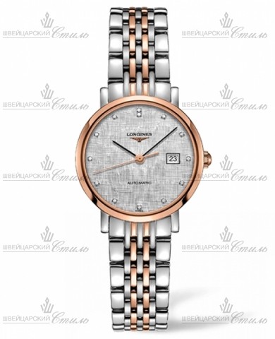 Диаметр: 29 мм. Механизм с автоподзаводом. Калибр L595/592. Индикация даты. Запас хода 40 часов. Циферблат декорирован 13 бриллиантами 0,029 ct. Прозрачная задняя крышка с сапфировым стеклом. Браслет: нержавеющая сталь и 18K розовое золото
