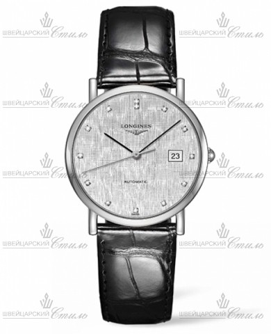 Диаметр: 34,5 мм. Механизм с автоподзаводом. Калибр L619/ L888. Индикация даты. Запас хода 42 часов. Циферблат декорирован 13 бриллиантами 0,032 ct. Прозрачная задняя крышка с сапфировым стеклом. Ремешок из кожи аллигатора