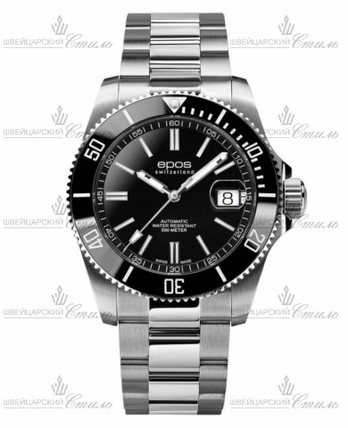 Диаметр: 43 мм. Калибр: SW 200. Механизм с автоподзаводом. Запас хода до 38 часов. Индикация даты. Завинчивающаяся заводная головка. Закручивающаяся задняя крышка корпуса. Вращающийся в одном направлении керамический безель. Сапфировое стекло. Часовая шкала: Накладные метки. Стрелки: стальные с покрытием SuperLuminova. Черный циферблат. Браслет: Нержавеющая сталь. Раскладная застежка с кнопками. Международная гарантия 2 года.