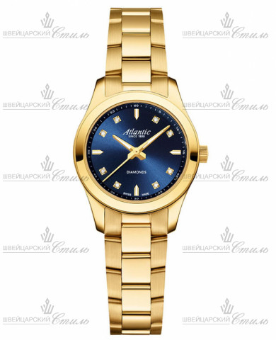 Диаметр: 28,5 мм. Калибр: RONDA 763.2. E.O.L-индикация разряда элемента питания. Часовая шкала: Бриллианты, индексы. Стрелки: стальные с люминесцентным покрытием. Синий циферблат. Браслет: Нержавеющая сталь 316L с PVD покрытием. Застежка клипса. Международная гарантия 2 года.