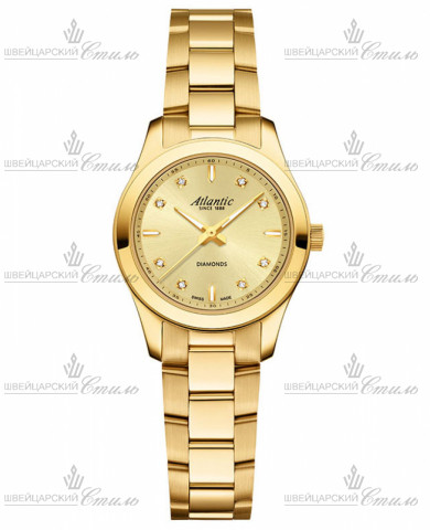 Диаметр: 28,5 мм. Калибр: RONDA 763.2. E.O.L-индикация разряда элемента питания. Часовая шкала: Бриллианты, индексы. Стрелки: стальные с люминесцентным покрытием. Желтый циферблат. Браслет: Нержавеющая сталь 316L с PVD покрытием. Застежка клипса. Международная гарантия 2 года.