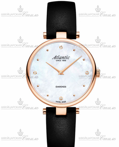 Диаметр: 33 мм. Калибр: Ronda 762. Сапфировое стекло. Часовая шкала: Настоящие брилианты в положении «12, 3, 6 и 9 часов». Стрелки: Стальные с PVD покрытием. Перламутровый циферблат. Браслет: Кожаный ремешок черного цвета. Классическая пряжка. Международная гарантия 2 года.
