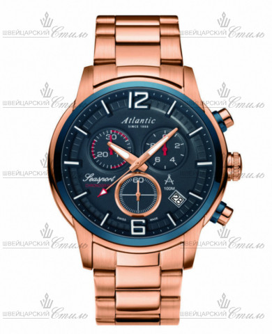 Диаметр: 46 мм. Калибр: ETA G10.212. Кварцевый хронограф. Индикация даты. Часовая шкала: Накладные часовые метки. Стрелки: Стальные с люминесцентным покрытием и желтым PVD. Синий циферблат. Браслет: нержавеющая сталь 316L с покрытием PVD. Застежка с кнопками и системой блокировки. Международная гарантия 2 года.