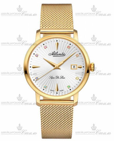 Диаметр: 36 мм. Калибр: Ronda 705. Сапфировое стекло. Часовая шкала: Фиониты. Стрелки: стальные с PVD покрытием. Серебристый циферблат с текстурированной отделкой. Браслет: стальной, миланское плетение с покрытием PVD. Клипса с системой блокировки. Международная гарантия 2 года.