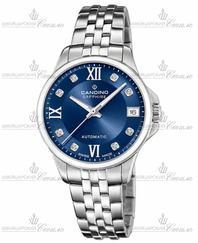 Диаметр: 34 мм. Толщина: 10,75 мм. Калибр: Soprod P024. Механизм с автоподзаводом. Запас хода до 38 часов. Индикация даты. Закручивающаяся задняя крышка корпуса. Сапфировое стекло. Часовая шкала: Накладные метки и римские цифры. Стрелки: стальные с люминесцентным покрытием. Синий циферблат. Браслет: Нержавеющая сталь. Раскладная застежка с кнопками. Международная гарантия 2 года.