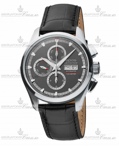 Диаметр: 43,5мм. Калибр: VJ 7750. Механический хронограф с автоподзаводом. Запас хода 38 часа. Индикация даты. Сапфировое стекло с антибликовым покрытием. Прозрачная задняя крышка корпуса. Часовая шкала: Метки. Стрелки: Стальные, полированные, с люминесцентным покрытием. Графитовый циферблат. Кожаный ремешок черного цвета. Клипса с системой блокировки и кнопкой. Международная гарантия 2 года.