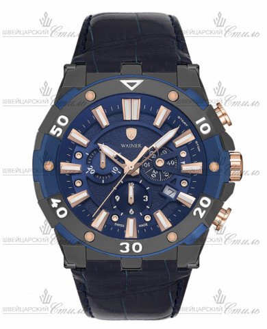 Диаметр: 48 мм. Калибр: RONDA 5030.D. Кварцевый хронограф. Индикация даты. Сапфировое стекло. Часовая шкала: Накладные метки. Стрелки: Стальные с покрытием SuperLuminova. Синий циферблат. Браслет: Кожаный ремешок синего цвета. Классическая пряжка. Международная гарантия 2 года.