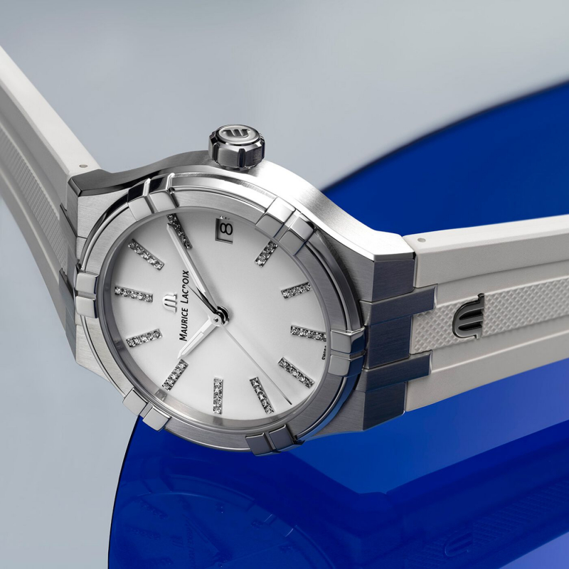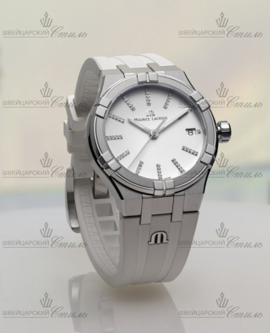 Диаметр: 35 мм. Калибр: ML. Индикация даты. Сапфировое стекло с двойным антибликовым покрытием. Завинчивающаяся заводная головка. Часовая шкала: Индексы с родиевым покрытием и 56 бриллиантов. Стрелки: с алмазной обработкой, родиевым покрытием и люминесцентным покрытием Super-LumiNova. Белый циферблат. Ремешок - белый каучук. Застежка из нержавеющей стали. Международная гарантия 2 года. Подарочная коробка.