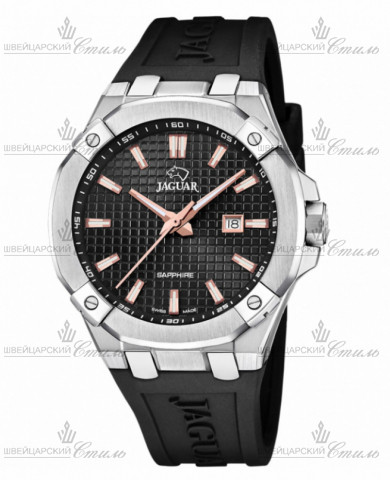 Диаметр: 44 мм. Калибр: RONDA 705 . Индикация даты. Часовая шкала: Накладные часовые метки. Стрелки: Стальные с люминесцентным покрытием. Черный циферблат. Браслет: Каучуковый ремешок черного цвета. Застежка классическая пряжка. Международная гарантия 2 года.