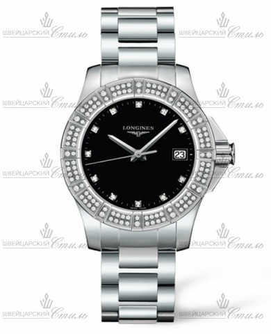 Диаметр: 35 мм. Калибр: L263. Корпус декорирован 120 бриллиантами 0,532 ct. На циферблате 11 бриллиантов 0,044 ct. Индикация даты. Браслет: нержавеющая сталь 316L