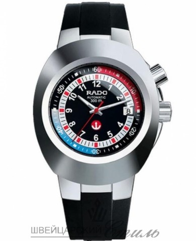 Размер 39x46 мм. Механизм с автоподзаводом.Индикация даты. Центральная секундная стрелка. Люминисцентные стрелки и метки. Ободок из сверхтвердого металла. Каучуковый ремешок.