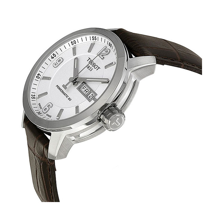 Диаметр: 39 мм. Калибр: Powermatic 80. Механизм с автоподзаводом. Запас хода 80 часов. Индикация даты и дня недели. Прозрачная задняя крышка. Завинчивающаяся заводная головка. Часовая шкала: Накладные арабские цифры и метки. Стрелки: стальные с покрытием SuperLuminova. Белый циферблат. Браслет: Кожаный ремешок коричневого цвета. Застежка с системой блокировки и кнопкой. Международная гарантия 2 года.