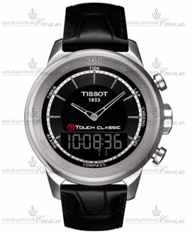 Диаметр: 42 мм. Калибр: ETA E49.301. Многофункциональные часы с электронным циферблатом: EOL – индикация разряда элемента питания, компас, индикация приливов, суммарный и сплит-хронограф (журнал), 2 таймера с обратным отсчетом времени, 2 будильника, «вечный» календарь, индикация времени второго часового пояса, подсветка. Часовая шкала: Накладные метки. Стрелки: Стальные, серебристые. Черный циферблат. Браслет: Кожаный ремешок черного цвета. Застежка с системой блокировки и кнопкой. Международная гарантия 2 года.