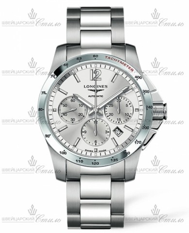 Диаметр: 41 мм. Калибр: L688. Механический хронограф с автоподзаводом. Запас хода 54 часов. Индикация даты. Тахиметрическая шкала. Сапфировое стекло с антибликовым покрытием. Закручивающаяся прозрачная задняя крышка корпуса. Часовая шкала: Накладные арабские цифры и метки. Стрелки: посеребренные, полированные. Серебристый циферблат. Браслет: нержавеющая сталь. Тройная застежка с системой блокировки и кнопкой. Международная гарантия 2 года