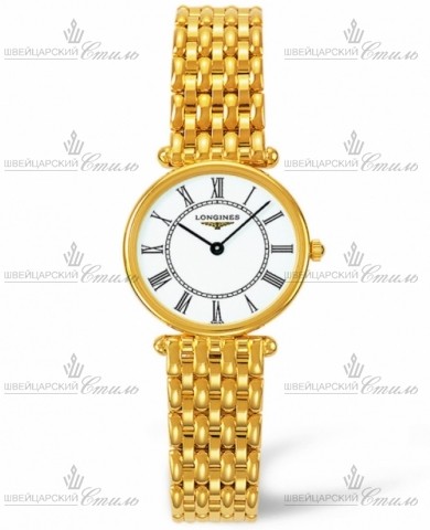 Диаметр: 23 мм. Калибр: L209. Часовая шкала: Нарисованные римские цифры. Стрелки: стальные, черные. Белый циферблат. Браслет: Золото 18К. Тройная застежка с системой блокировки и кнопкой. Международная гарантия 2 года.