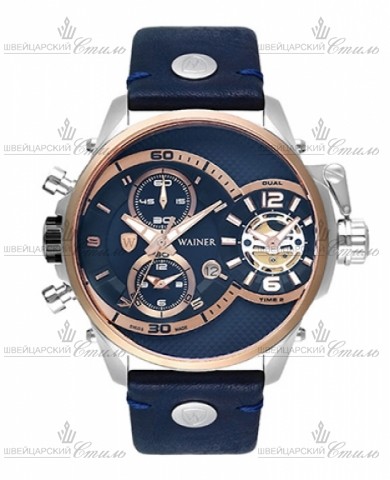 Диаметр: 50 мм. Калибр: Ronda 3520.D и Ronda 751. Индикация даты. Второй часовой пояс. Два независимых механизма. Синий кожаный ремешок &am
