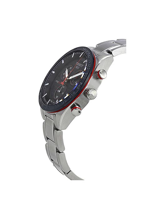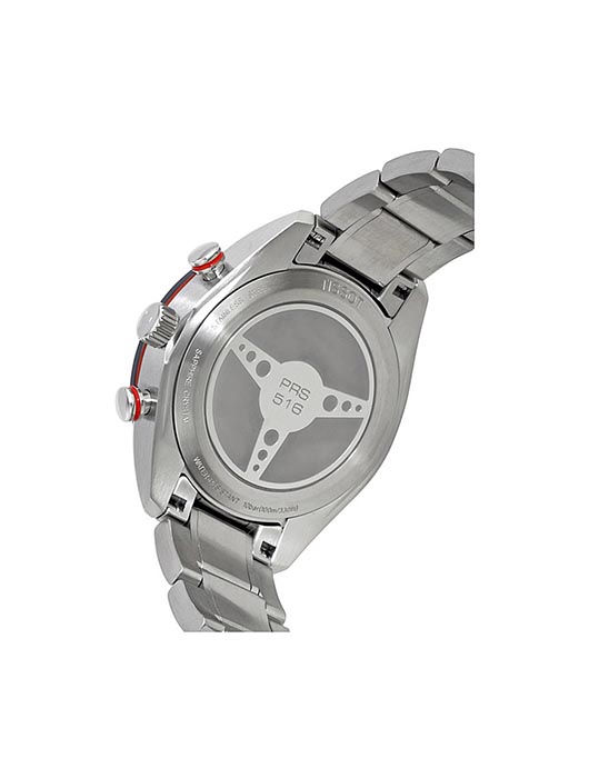 Диаметр: 42 мм. Калибр: ETA G10.212. Кварцевый хронограф. Индикация даты. Сапфировое стекло с антибликовым покрытием. Тахиметрическая шкала. Часовая шкала: Накладные метки. Стрелки: Стальные с покрытием SuperLuminova. Черный циферблат. Браслет: Нержавеющая сталь. Застежка с системой блокировки и кнопкой. Международная гарантия 2 года.