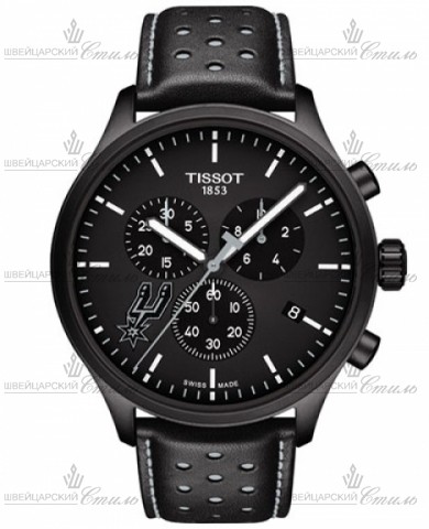 Диаметр: 45 мм. Калибр: ETA G10.212. Кварцевый хронограф. Индикация даты. Часовая шкала: Нарисованные метки. Стрелки: Стальные с покрытием SuperLuminova. Черный циферблат. Браслет: Кожаный ремешок черного цвета. Классическая пряжка. Циферблат украшает логотип команды NBA San Antonio Spurs Special Edition. Международная гарантия 2 года.
