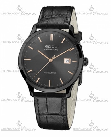 Диаметр: 40 мм. Толщина: 7,7 мм. Калибр: ETA 2892. Механизм с автоподзаводом. Запас хода 42 часов. Индикация даты. Прозрачная задняя крышка корпуса. Тонкий стальной корпус с покрытием черного PVD. Циферблат черного цвета. Часовая шкала: индексы с покрытием розового PVD. Стрелки: с покрытием розового PVD. Браслет: Черный кожаный ремешок с раскладывающейся застежкой. Международная гарантия 2 года. Производство: Швейцария.