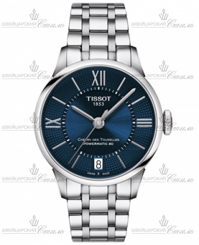 Диаметр: 32 мм. Калибр: ETA Powermatic 80. Механизм с автоподзаводом. Запас хода 80 часов. Индикация даты. Прозрачная задняя крышка. Сапфировое стекло с антибликовым покрытием. Часовая шкала: Накладные римские цифры и метки. Стрелки: стальные. Синий, гильошированный циферблат. Браслет: Нержавеющая сталь. Застежка с системой блокировки и кнопкой. Международная гарантия 2 года.