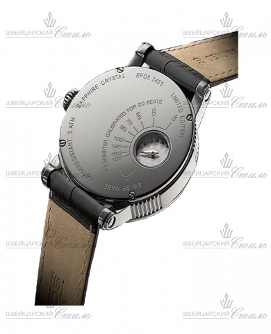 Диаметр: 42,5 мм. Калибр: ETA Unitas 6498-2. Механизм с ручным заводом. Запас до 50 часов. Циферблат-скелетон: мосты и платина скелетонизированы и украшены гравировкой, родиевое покрытие, шлифовка «жемчужное зернение», шляпки винтов отполированы и имеют синение. Прозрачная задняя крышка крепится к корпусу 4 винтами. Сквозь прозрачное окно из минерального стекла видна секундная стрелка, гравированная под разметку пульсометра. Браслет: натуральная кожа черного цвета с застежкой «бабочка». Международная гарантия 2 года. Производство: Швейцария. Лимитированная серия: 15 из 999 экземпляров.