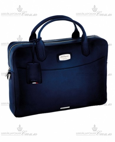 Сумка для документов S.T.Dupont коллекции ATELIER. Размер: 30 x 40 x 9 см. Темно-синяя гладкая кожа с эффектом патины. Синяя белая красная строчка (французский флаг). Металлическая пластина с палладиевым покрытием и старинной гравировкой логотипа S.T. Dupont. Внутри: 1 основное отделение для документов, ноутбука; 4 накладных кармана, 1 карман на молнии, 1 накладной карман снаружи. В комплекте: плечевой ремень. Аксессуары: адресная бирка. Производство: Франция.