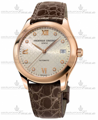 Диаметр: 36 мм. Калибр: FC-303. Механизм с автоподзаводом. Запас хода 38 часов. Прозрачная задняя крышка. Часовая шкала: Накладные римские цифры и бриллианты. Стрелки: стальные, золотистые. Серебристый, гильошированный циферблат. Браслет: Кожаный ремешок коричневого цвета. Клипса с системой блокировки и кнопкой. Международная гарантия 2 года.